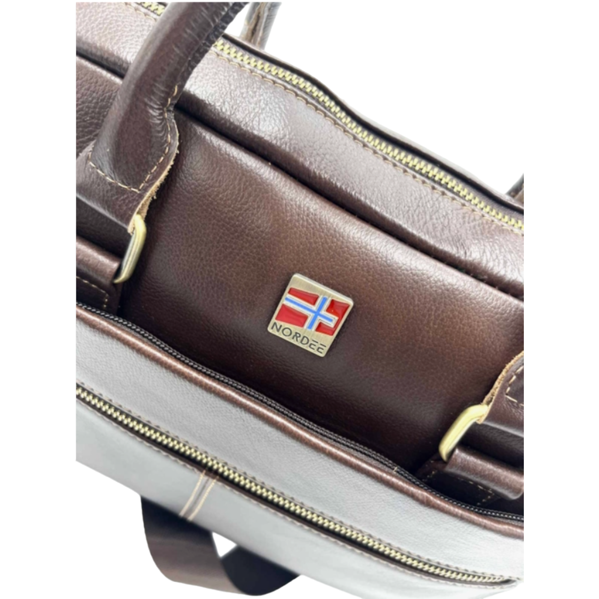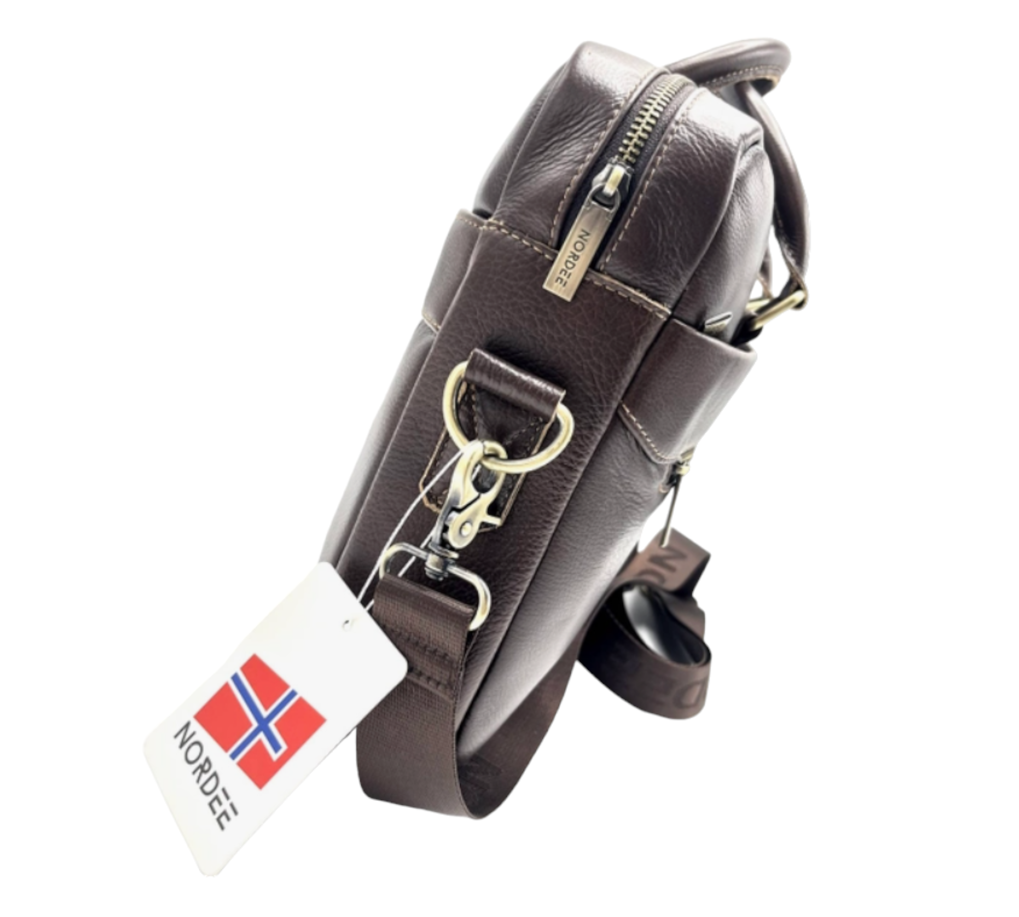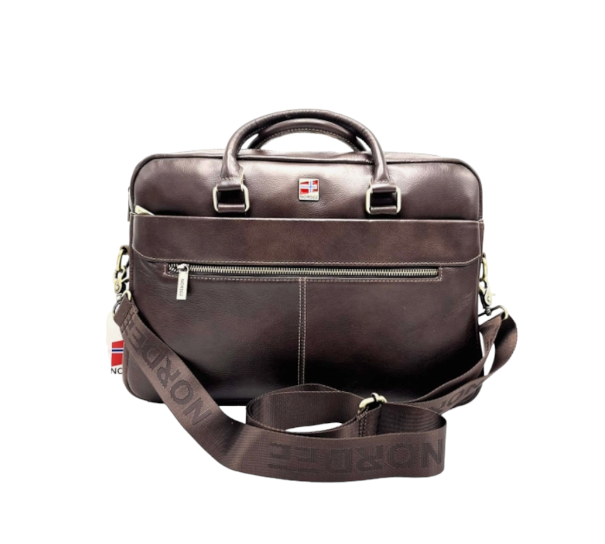 Zoek je een luxe leren aktetas die professioneel oogt én slim is ingedeeld? De Norde laptoptas 14" combineert stijl met functionaliteit. De tas heeft drie ruime compartimenten met aparte plekken voor een 14-inch laptop, tablet en A4-documenten. Dankzij de meerdere insteekvakken berg je telefoon, portemonnee, sleutels en kabels overzichtelijk op. Draag ‘m stijlvol in de hand aan de stevige handvatten of handsfree met de afneembare, verstelbare schouderriem. Het donkerbruine leer ontwikkelt een mooie patina en past bij elke zakelijke of casual look. Met een slank profiel (38 × 8 × 26 cm) schuif je de tas makkelijk onder je arm of in een trolley. Ideaal voor kantoor, meetings en onderweg.