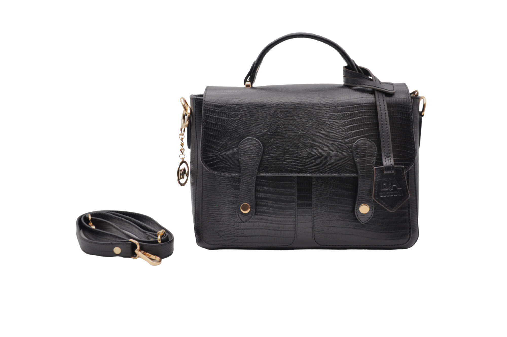 Hoogwaardig rundleer met goudkleurige hardware