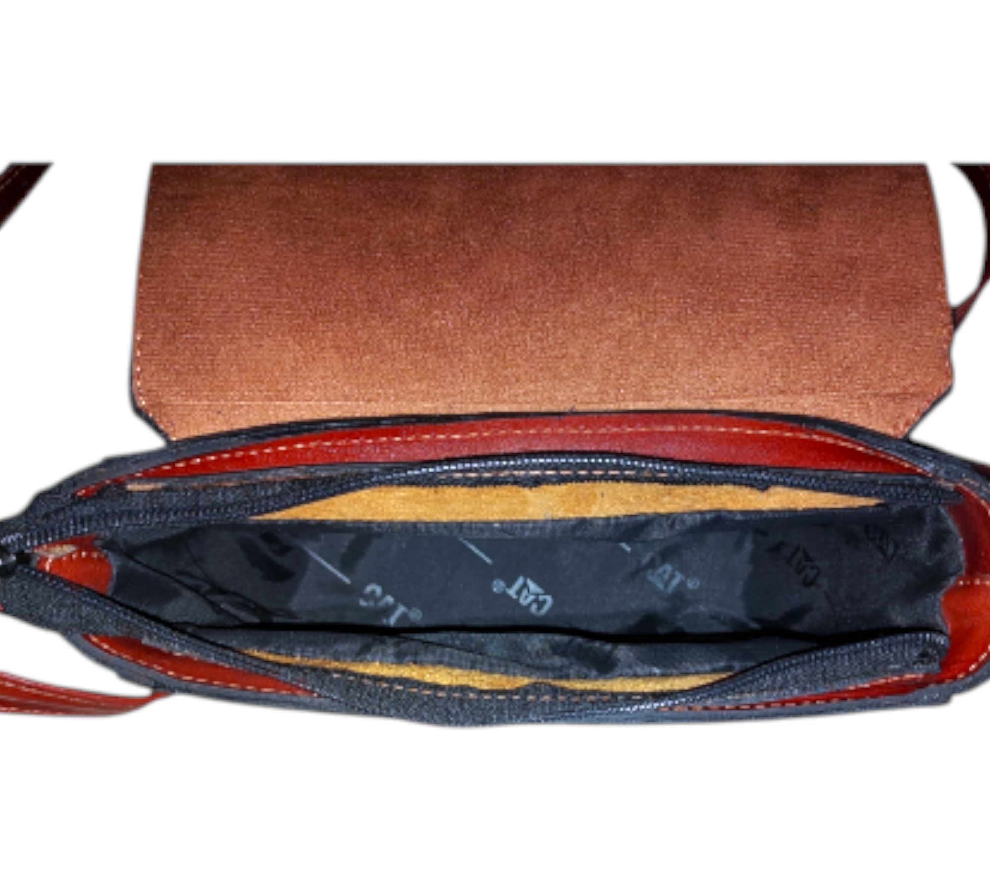 Indeling: 1 hoofdvak met rits • 1 achtervak met rits • magnetische flap