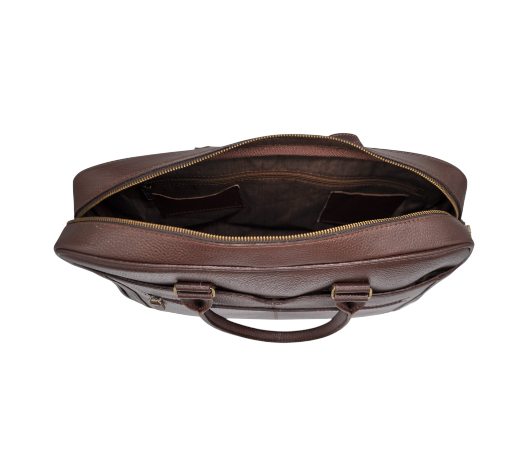 De Dario is een luxe, slanke aktetas van rundleer die werk en reizen moeiteloos combineert. Met twee ruime compartimenten biedt hij plek aan een 15,6″ laptop, tablet en A4-documenten, terwijl je oplader, muis en persoonlijke essentials overzichtelijk blijven in de slimme opbergvakken. Draag hem zakelijk in de hand of comfortabel over de schouder met de afneembare, verstelbare schouderriem. Het rijke, donkerbruine leer en de metalen hardware geven de tas een tijdloze, professionele look.