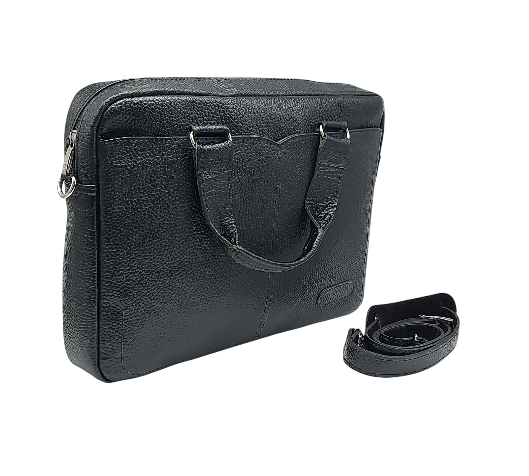 De Ewen is een luxe, slanke aktetas van rundleer die werk en reizen moeiteloos combineert. Met twee ruime compartimenten biedt hij plek aan een 15,6″ laptop, tablet en A4-documenten, terwijl je oplader, muis en persoonlijke essentials overzichtelijk blijven in de slimme opbergvakken. Draag hem zakelijk in de hand of comfortabel over de schouder met de afneembare, verstelbare schouderriem. Het rijke, zwarte leer en de metalen hardware geven de tas een tijdloze, professionele look.