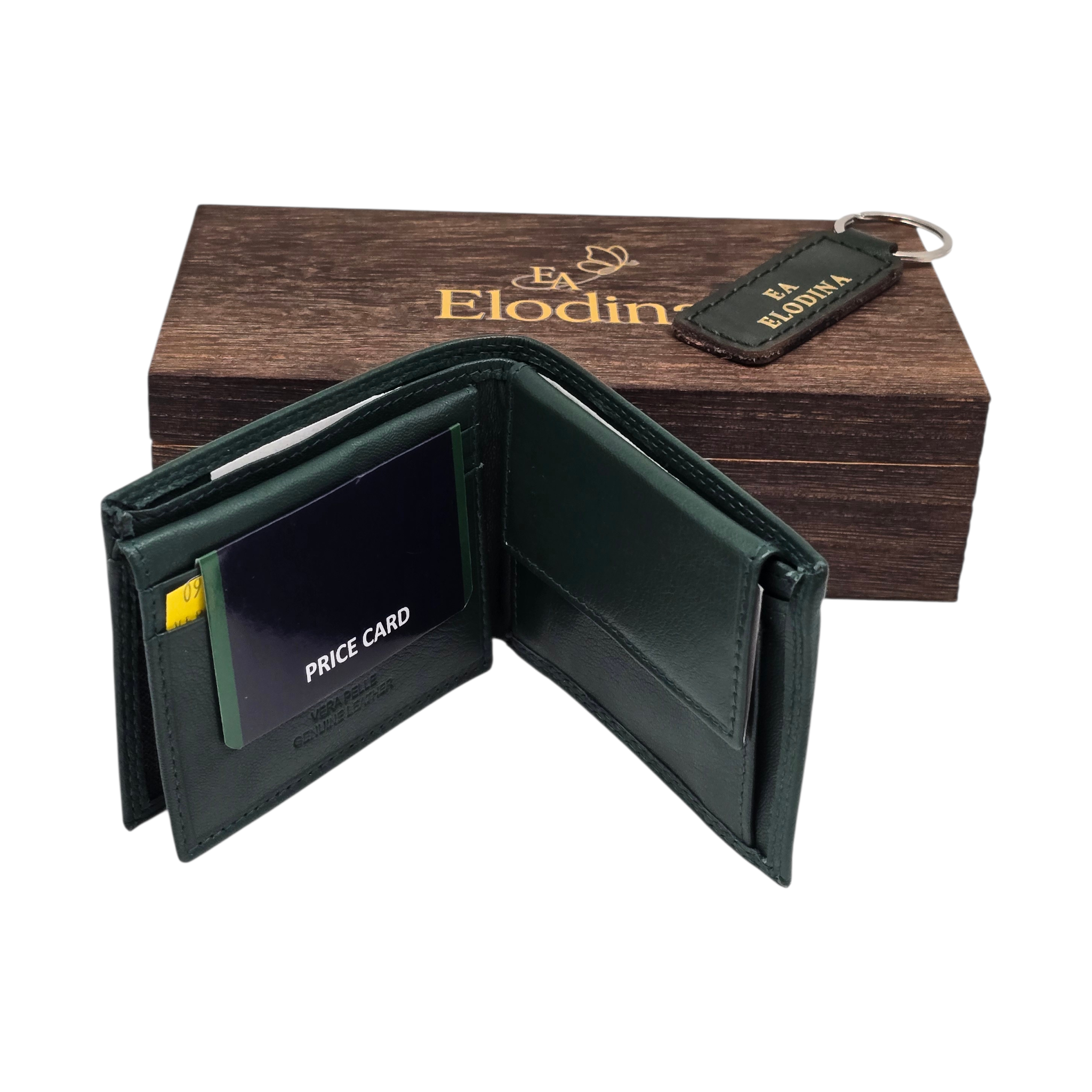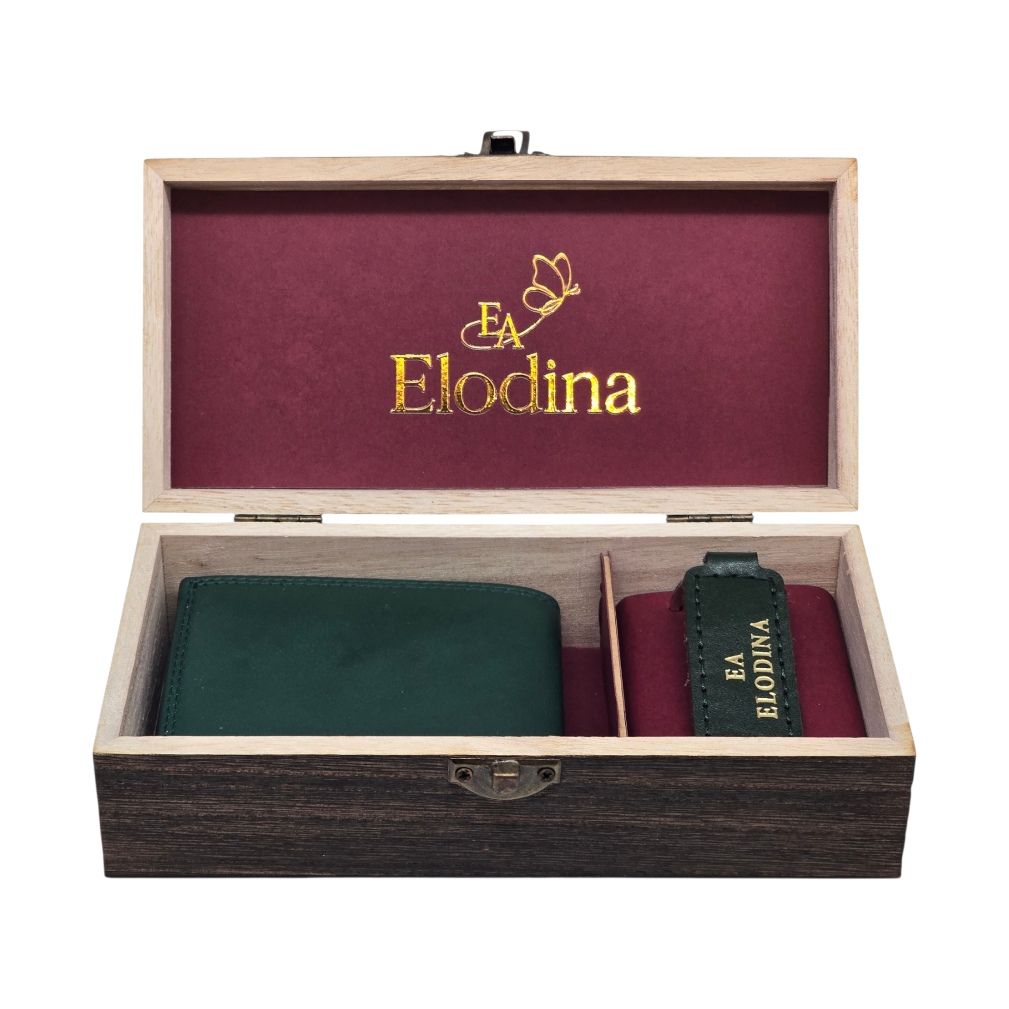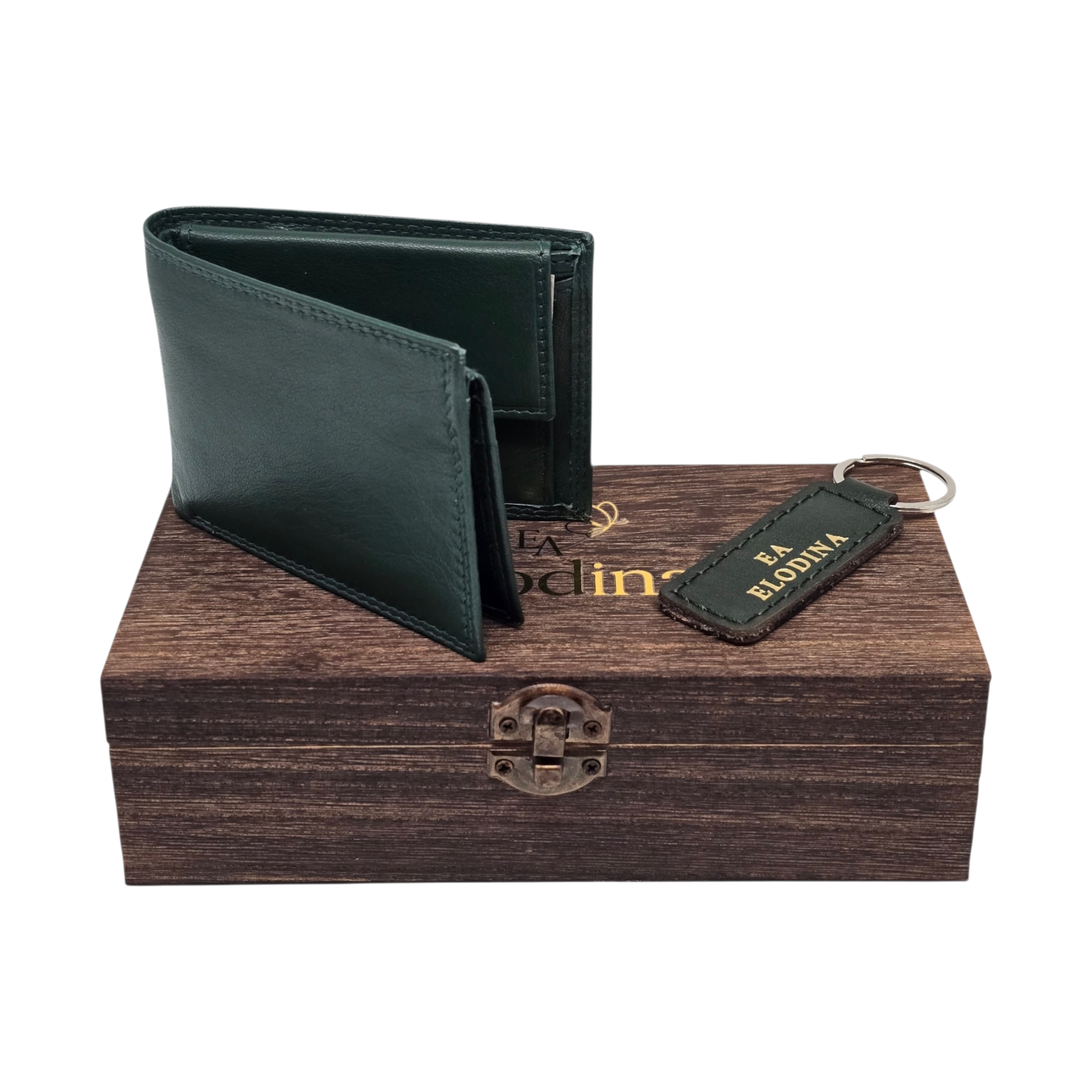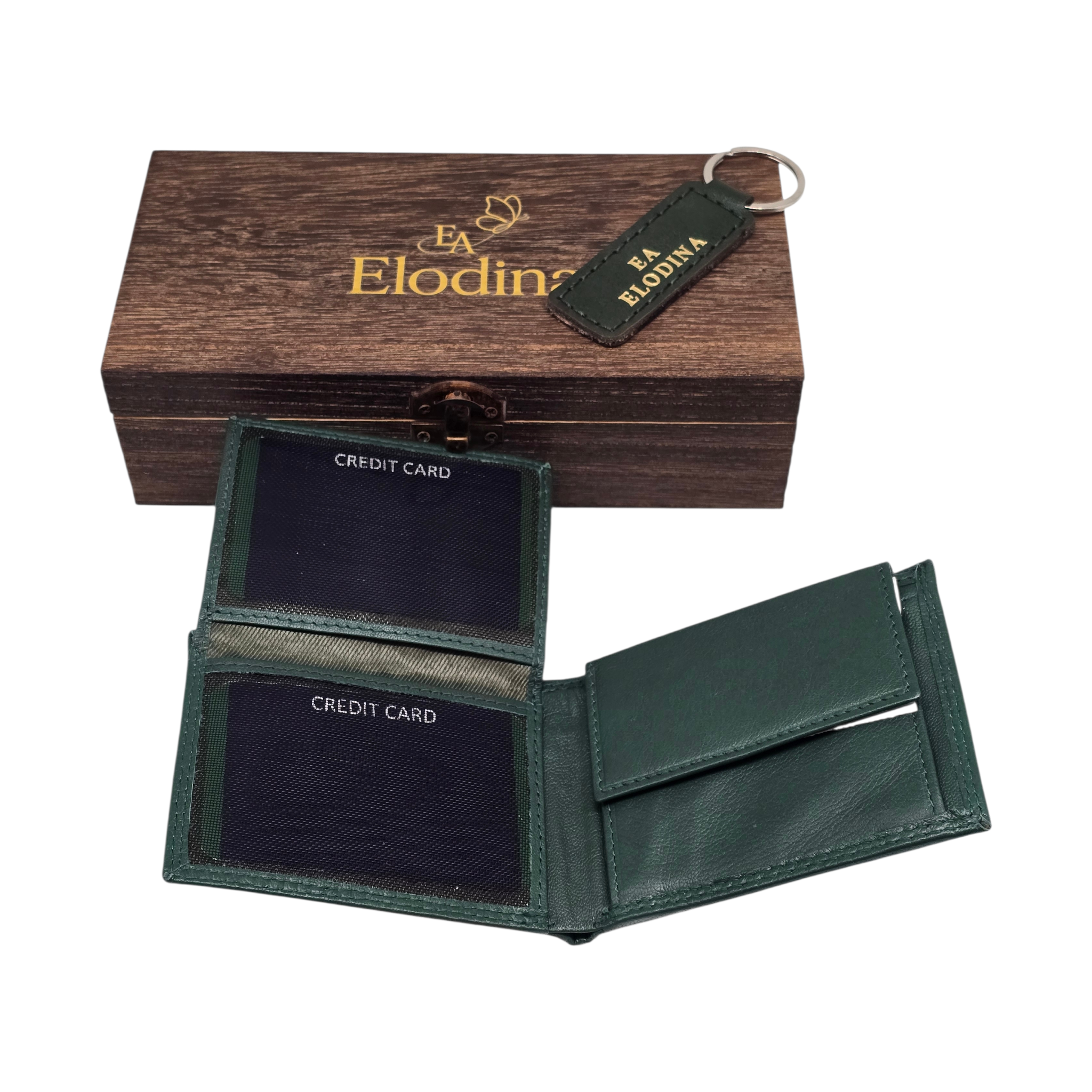 Ontdek tijdloze verfijning met deze exclusieve Elodina giftbox, met de hand samengesteld voor wie houdt van stijl, kwaliteit en vakmanschap. De compacte leren portemonnee en bijpassende sleutelhanger zijn vervaardigd van hoogwaardig echt leer en gepresenteerd in een elegante houten bewaardoos. Een ideaal cadeau voor elke gelegenheid.