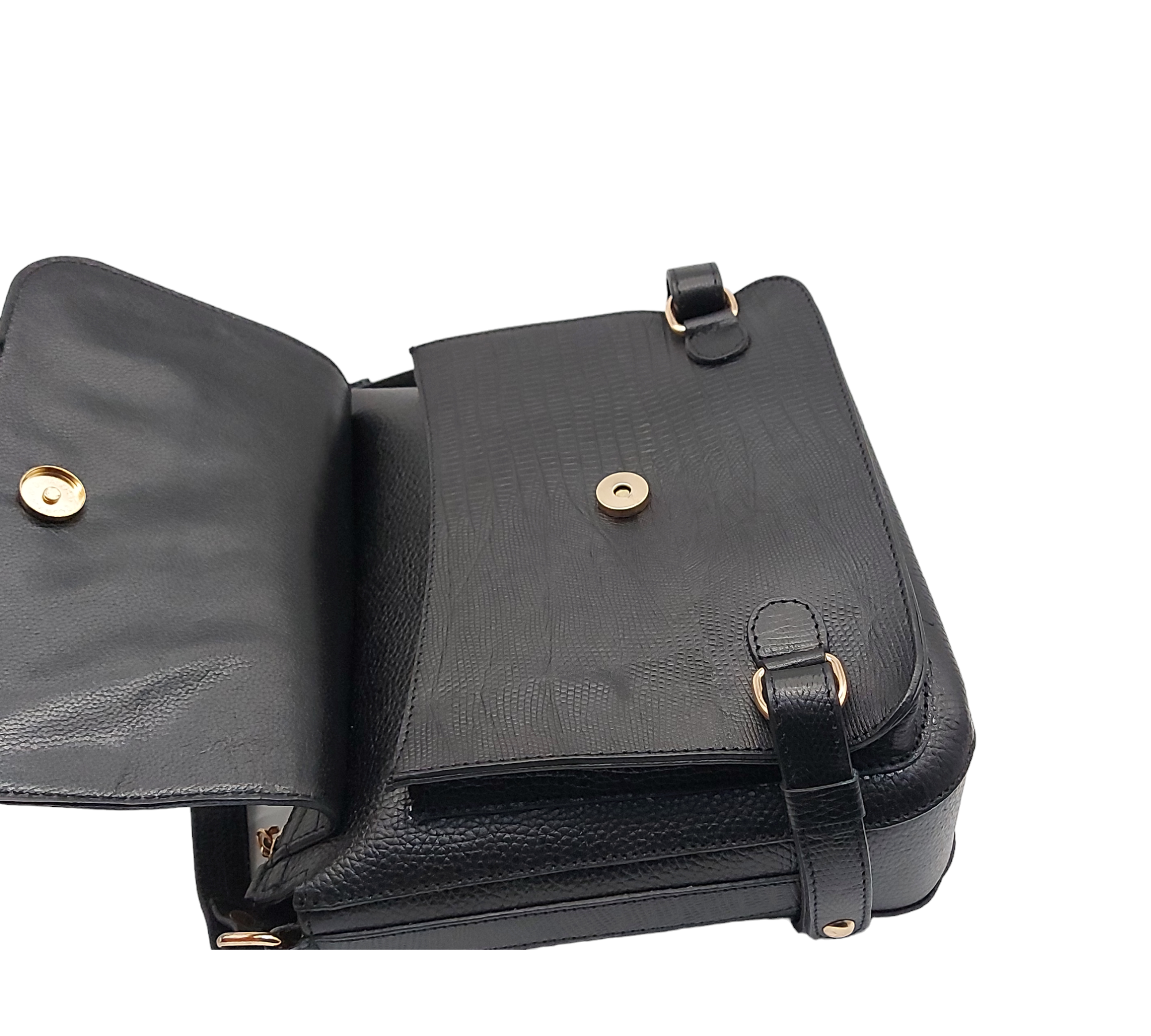 Op zoek naar een luxe, chique leren schoudertas die compact oogt maar verrassend veel ruimte biedt? De Lidia is gemaakt van 100% hoogwaardig rundleer en afgewerkt met goudkleurige hardware. De flap met magneetsluiting en het hoofdvak met rits houden je essentials veilig, terwijl de slimme indeling alles netjes op z’n plek houdt. Ideaal voor dagelijks gebruik – van werk tot weekend.