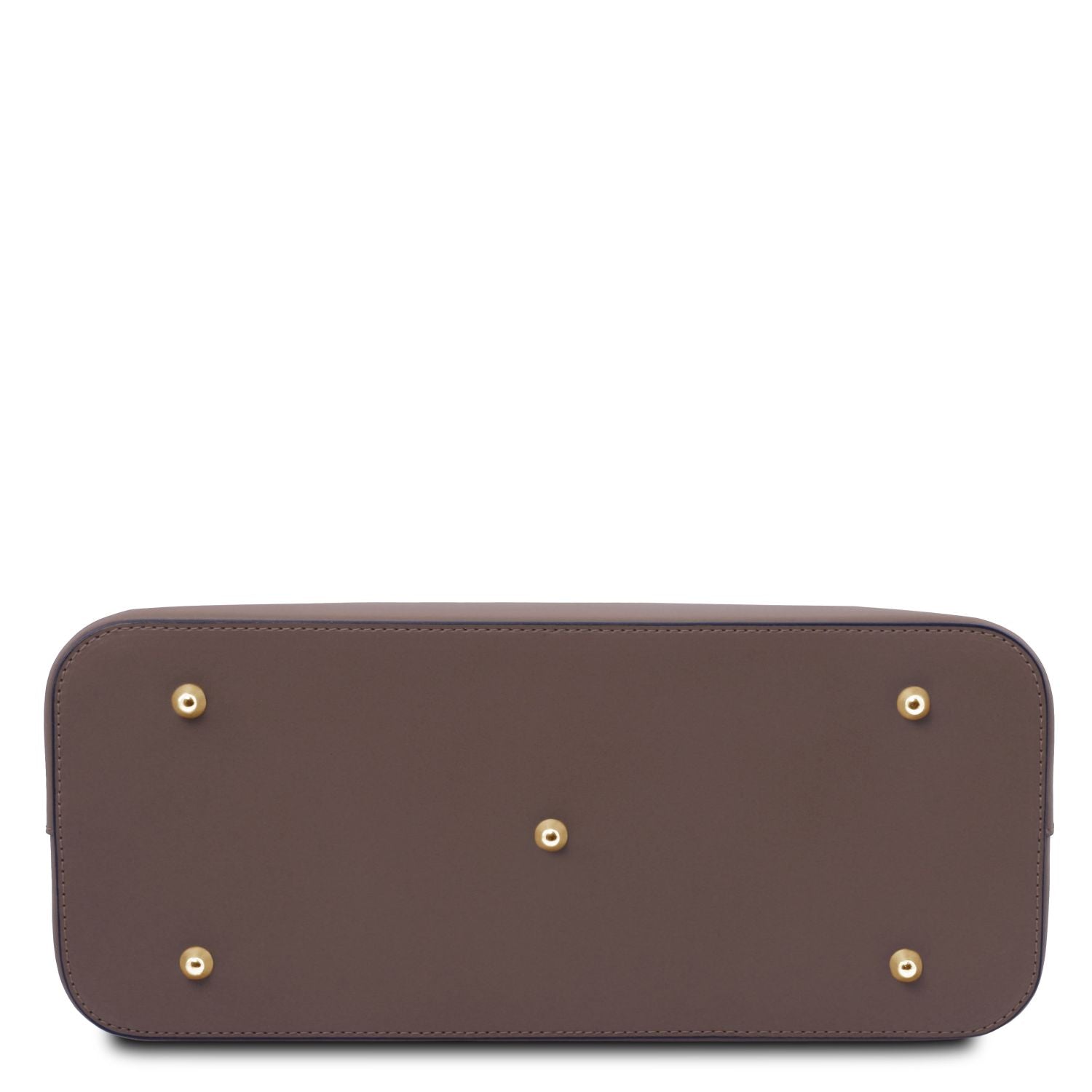 • Buitenkant: Goudkleurige hot-stamp met Tuscany Leather-logo, beschermende metalen voetjes, achtervak met ritssluiting
