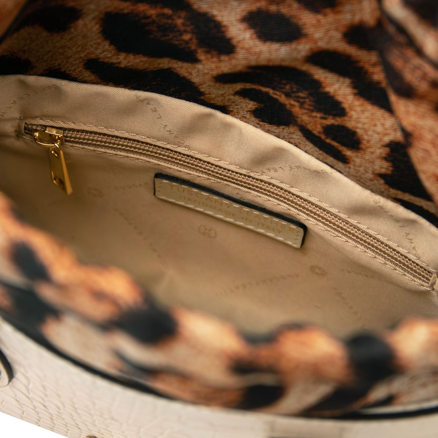 Pure Italiaanse klasse in een modern design. De Croque handtas van Tuscany Leather is gemaakt van hoogwaardig leer met een subtiele crocoprint. Een perfecte mix van elegantie en functionaliteit – ideaal voor werk, reizen of een dagje uit.